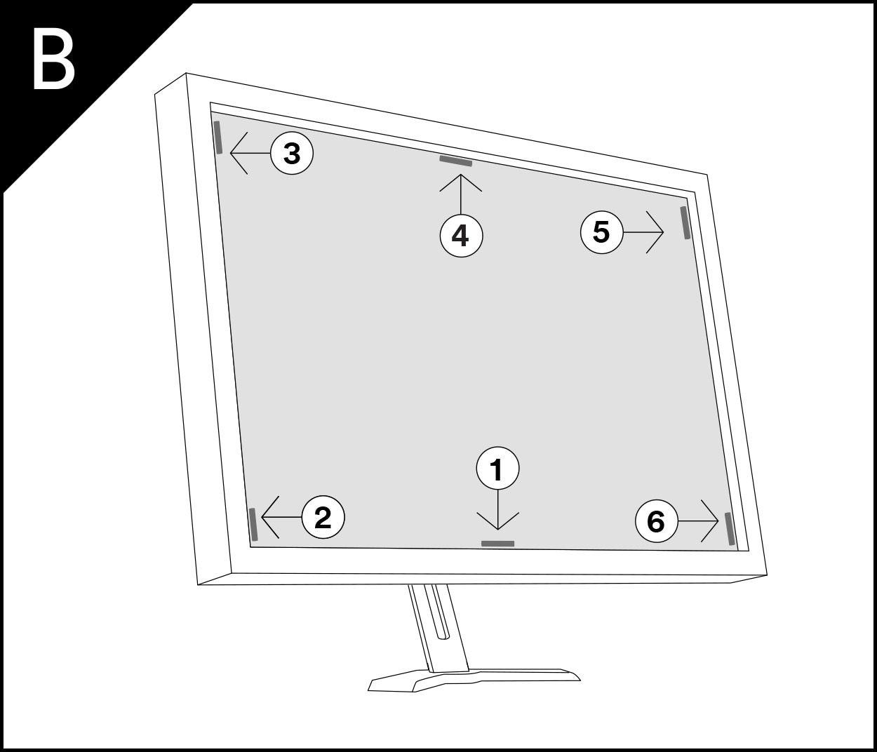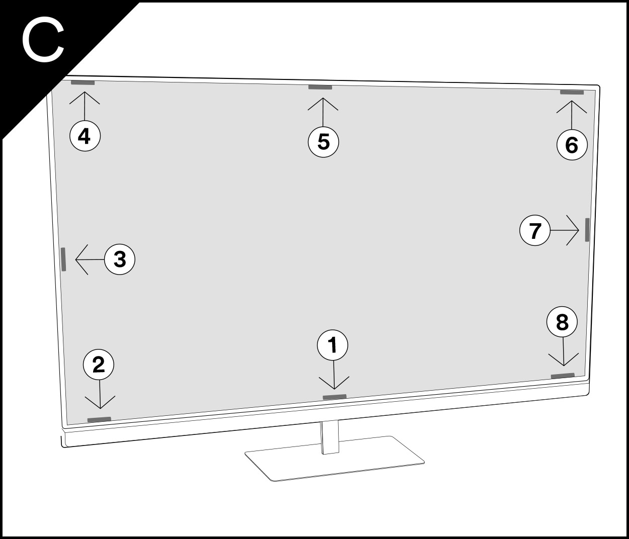 Note: Depending on the size of your display, you may not need to use all attachment strips. For larger than average displays, use additional strips provided in your package and apply as instructed.