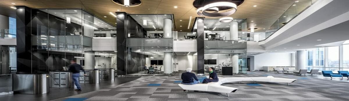 City skyline with a graphical overlay of nodes of light connected by straight lines creating a geometric pattern.