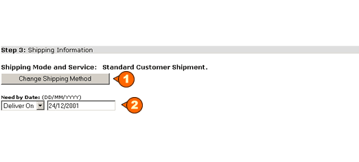 | Click the Change Shipping Method button to select from Courier, Pick-up and Standard (default) | |