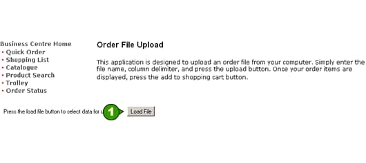 | Click the Load File button to transfer your order to the Business Centre. | |