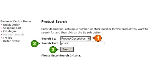 To search for a product enter a search phrase. In this case we have entered"post-it" to find all references to 3M Post-it products.