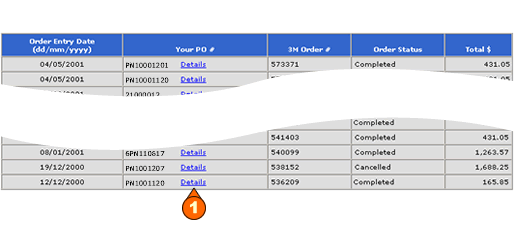 A list of all your orders, according to your search criteria, is displayed.