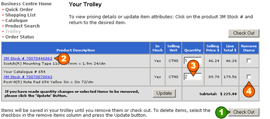 | To purchase the items in your Trolley click the Checkout button | |